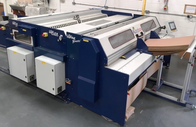 The Autobox (BCS ) Hicut special carton manufacturing process machine which can make 0401, 0402 and various other Fefco styles cartons without the need for any die cut form, and again, with typically only a one minute set up time. The Hicut machine can also cut windows and hand holes, and has a simple die-cut station with a 200mm x 200mm area and print basic part numbers or small logo within the same area.